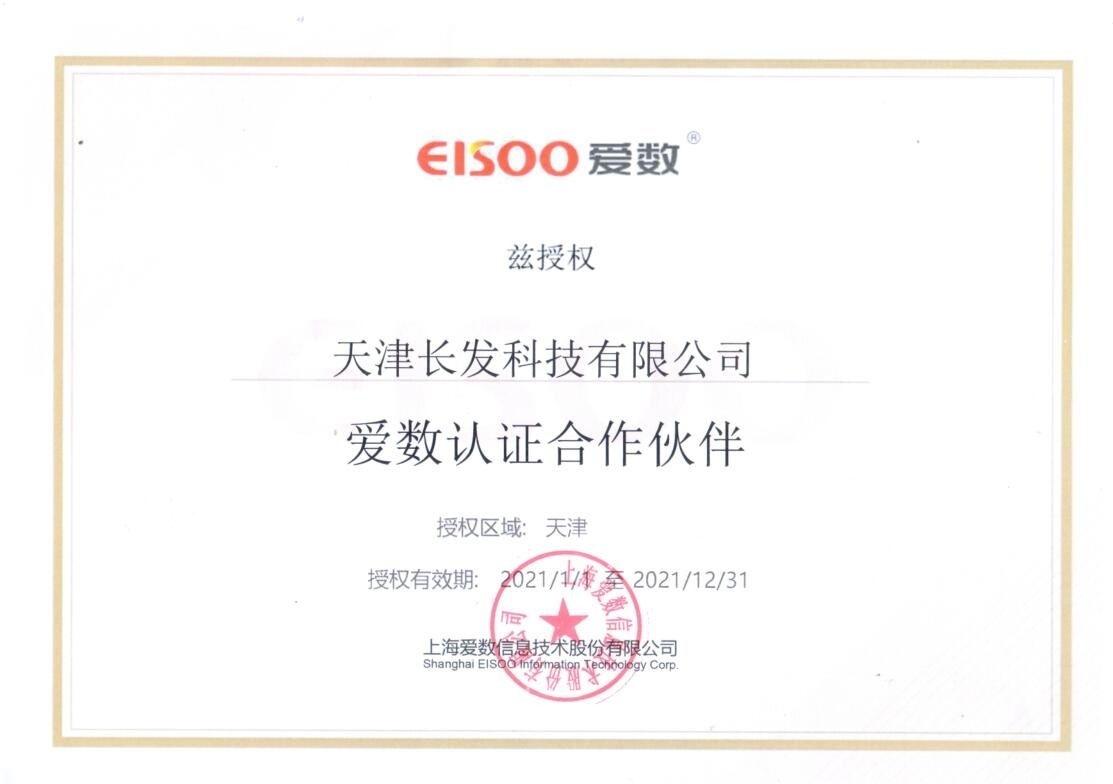 授予長發(fā)科技愛數(shù)天津區(qū)域認證合作伙伴